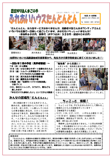 認定NPO法人 まごの手は、制度外の在宅福祉サービス、移送サービス、地域の居場所づくりの活動を通し、「自分らしく生きられる、生きがいが持てる、安心して暮らせる」地域福祉の充実を目的としています。